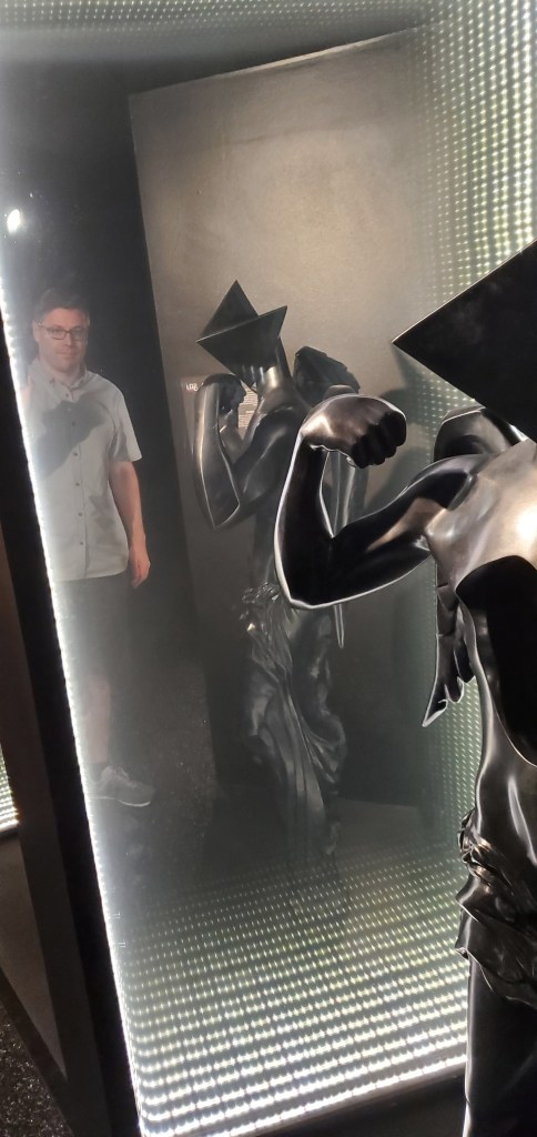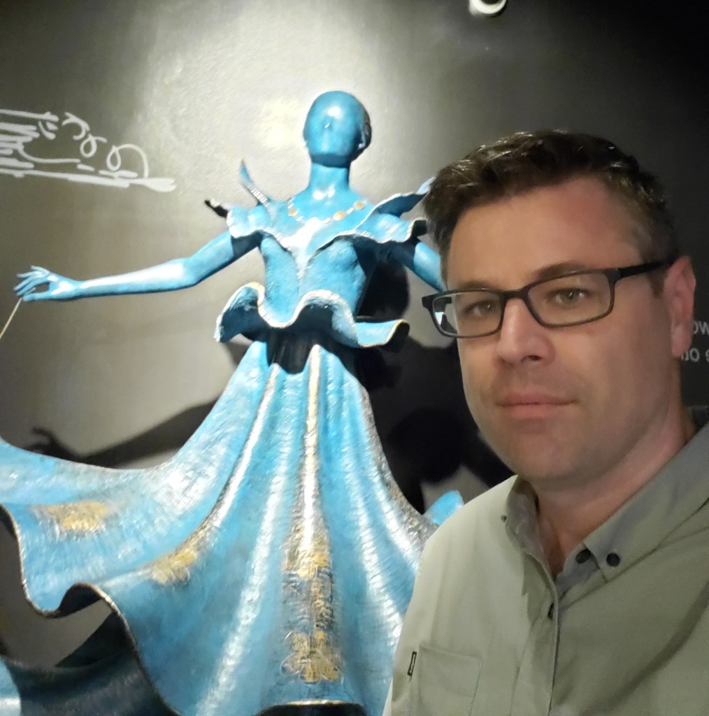 The surrealist lighting exaggerates the author’s greying hairline 😉 Some of these sculptures are small and petite, others are quite massive–even taller than I am.