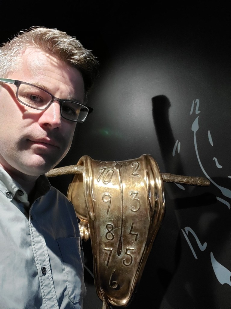 Somewhere floating out there in cyberspace is a photo of inside New York City’s Museum of Modern Art, standing beside Salvador Dalií’s most famed piece, The Persistence of Memory. Oh, wait, here it is!