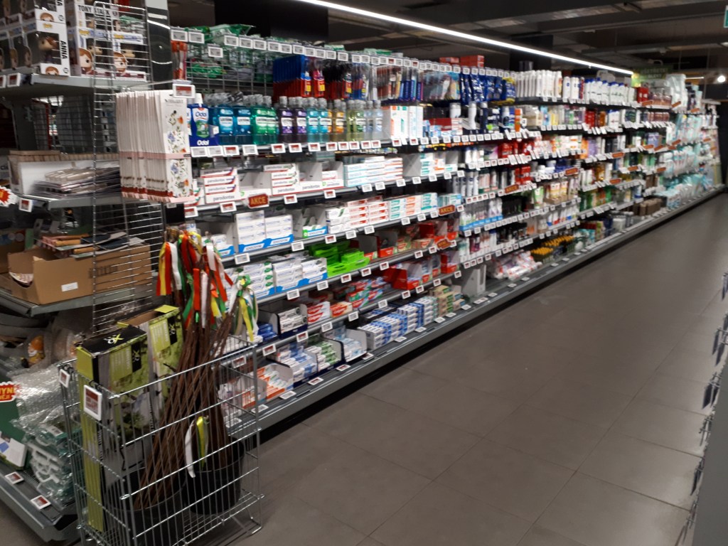 Yes, this Prague supermarket sells pomlázka whips in its health and beauty isle. First, a little background: Since the breakup of the Warsaw Pact in 1989, when the former Soviet block countries dismantled the total control of a state-owned economy in their respective countries, the result has been, how shall we say, mixed? Here’s just a list of a few unusual things I’ve had to adopt to when shopping for food and other necessities: